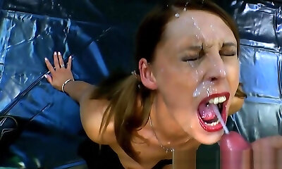 Unusual peach gets jizz flow on her face gulping all the love juice