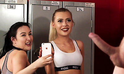 Voyeur gym duo film Jerk Off Instructions in fitness lockerroom