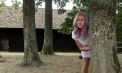 Nice Amateur teen brunette masturbating outdoor