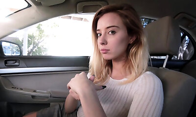 blonde riley rose baisée dans la voiture avec ses lunettes