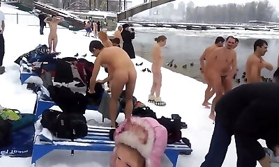 des demoiselles chinoises aux gros seins et en uniformes d'université se font pilonner dans la neige de braise