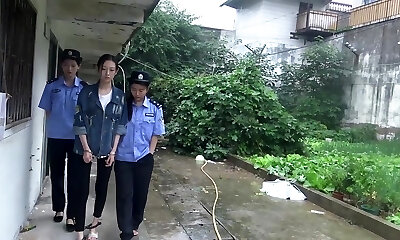 une fille chinoise arrêtée et menottée