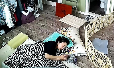 vidéo de caméra cachée espiègle de ma propre femme mince montrant son cul dans la chambre