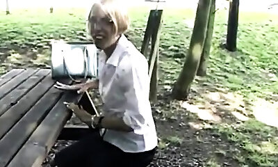 grand-mère hirsute blonde platine rectale en plein air