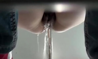 toilette espion pipi chatte sans poils bas noirs gros cul énormes cruches pipi et spray