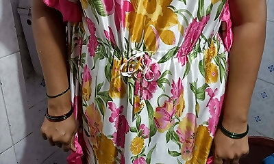 dame mature blanche en robe pisse dans la salle de toilette