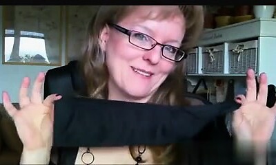 Brunette in lingerie and in stockings cumming from slapping with a bus...
