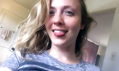 Hot blonde mommy exposes her big boobs and pointy nipples