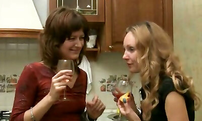 Mature Russian chicks in the kitchen go farther than a party