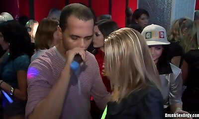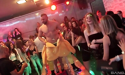 Slutty women goes kinky in the night club and take part in a crazy group orgy
