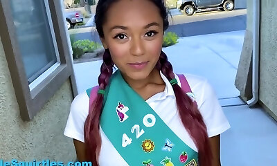 маленькие сквиртлы - маленькая распутная леди-разведчица продает печенье, глубоко глотая и вспахивая своего соседа - 1080p