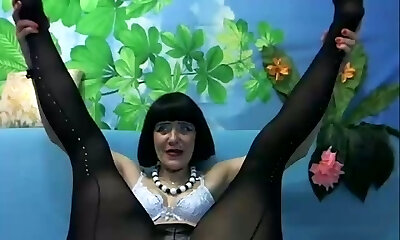 довольно гибкая зрелая шлюха с короткой стрижкой наслаждалась своим фистингом