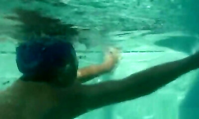 яркая леди может надолго задержать дыхание, наслаждаясь голышом в бассейне