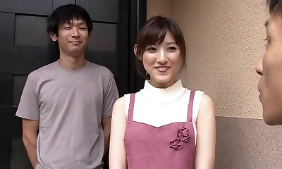 красавица нао джингуджи нетерпеливо встает позади своего мужа, чтобы получить немного члена