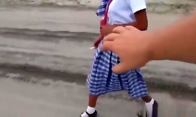 A Latin schoolgirl publicly sucked a dick and fucked in a doggy style with her friend.