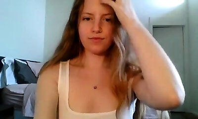 Blonde nubile girl squirts with webcam at home