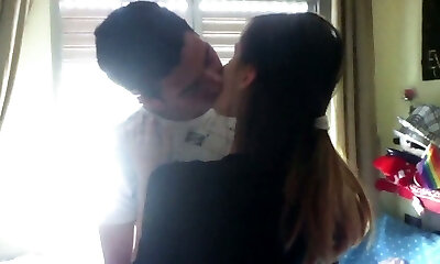 令人兴奋的photosession变成充满激情的联播与俏皮的处女吻