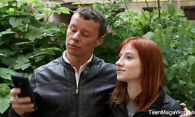 年轻的红发挞刘海和需要大量的每次妳站在她的脸和食道-埃琳娜罗斯