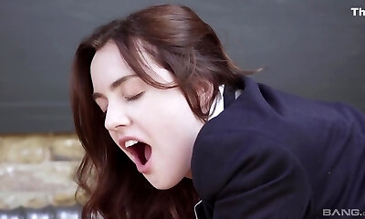 匀称的丫头vivie delmonico给她的老师一个地狱的口头