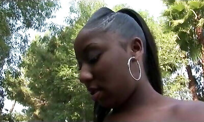 Chocolate bitch with round ass is railing dick outdoor