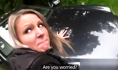 Light-haired gets pussy cumshot outdoors