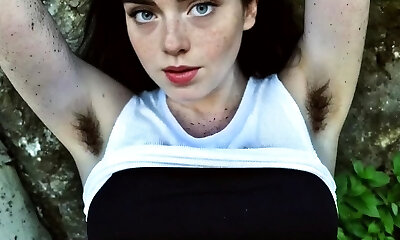 Skinny babe with hairy armpits and pubic hair POV on cam