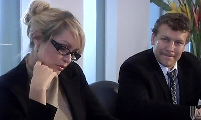 ufficio milfie mega-cagna con ultra-cute kinks britney ambra opere su cazzo in ufficio