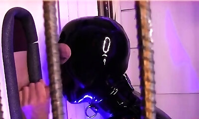 Latex gasmask trussed and plugged
