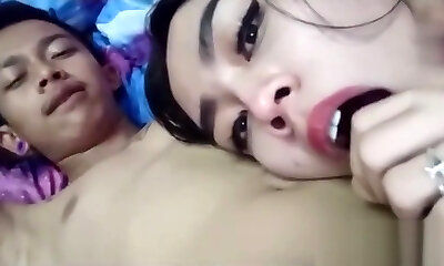 Chinese shemale thrusts her partner's anal as she gives her a hand job